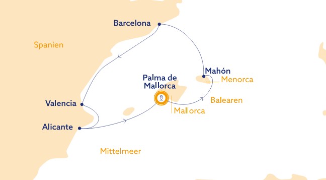 Mallorca - Menorca - Barcelona - Valencia - Alicante - Mallorca