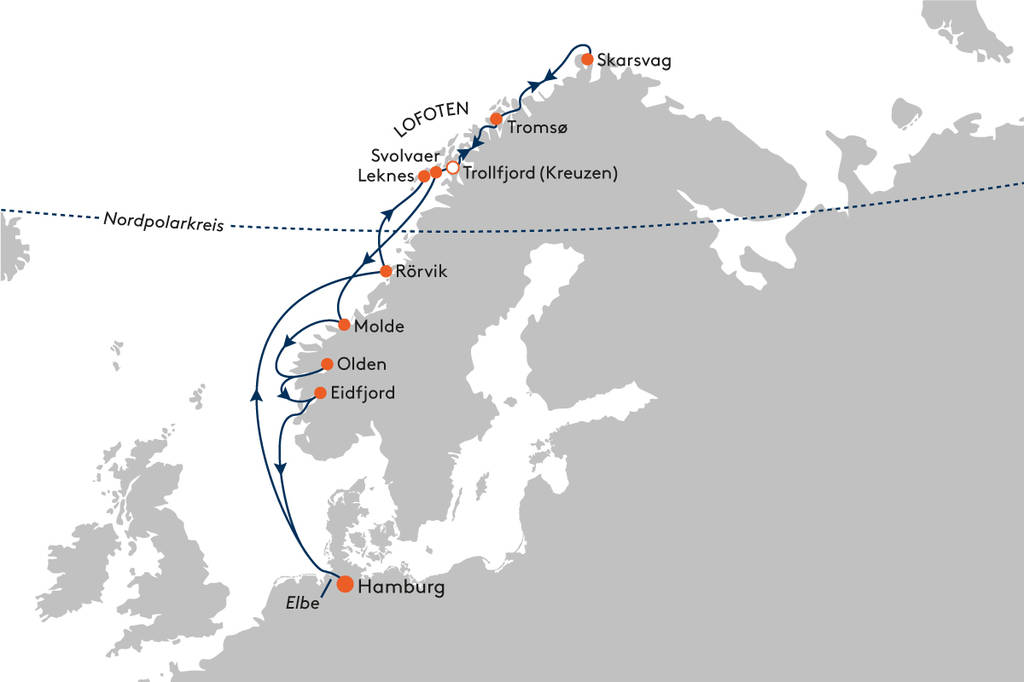 Rauschende Wasserfälle, tiefgrüne Fjordlandschaften und einsame Inselarchipele – machen Sie Ihren nordischen Urlaubstraum wahr, und begleiten Sie die EUROPA bis hoch an das sagenumwobene Nordkap.