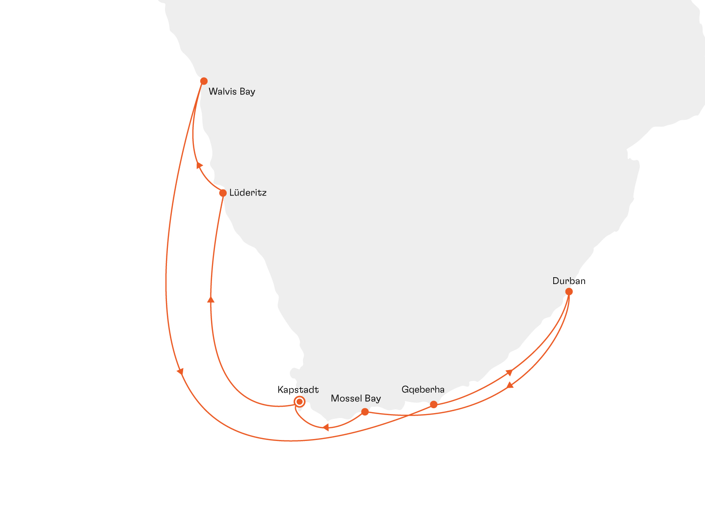 | 22.11.2027 | Walvis Bay/Namibia, Abfahrt 18:00 Uhr |