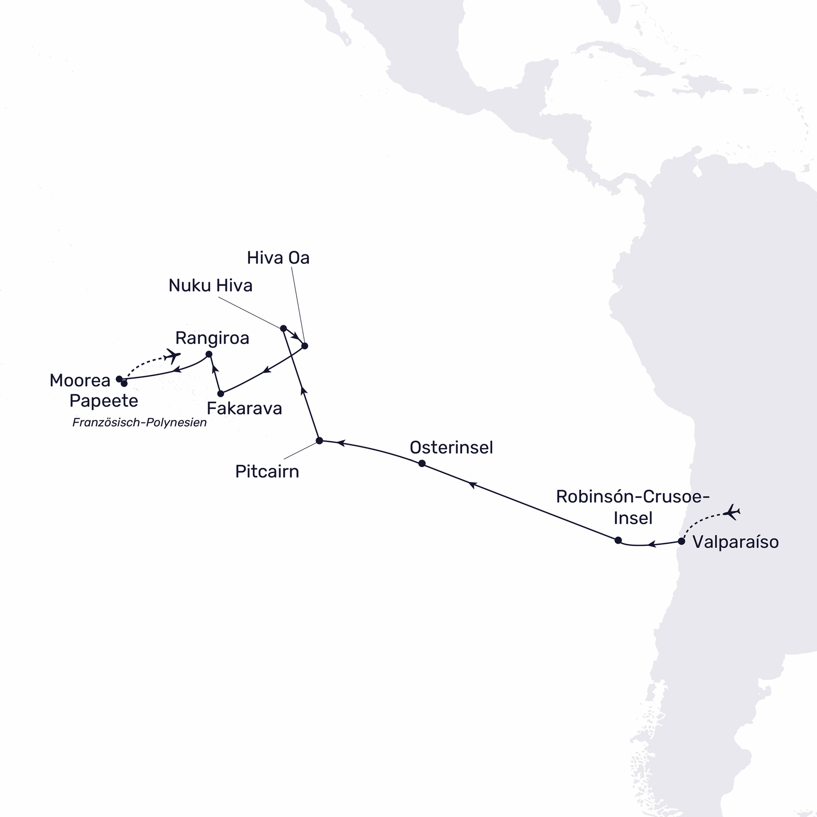 Valparaíso – Chile – Osterinsel - Pitcairn - Französisch-Polynesien – Papeete