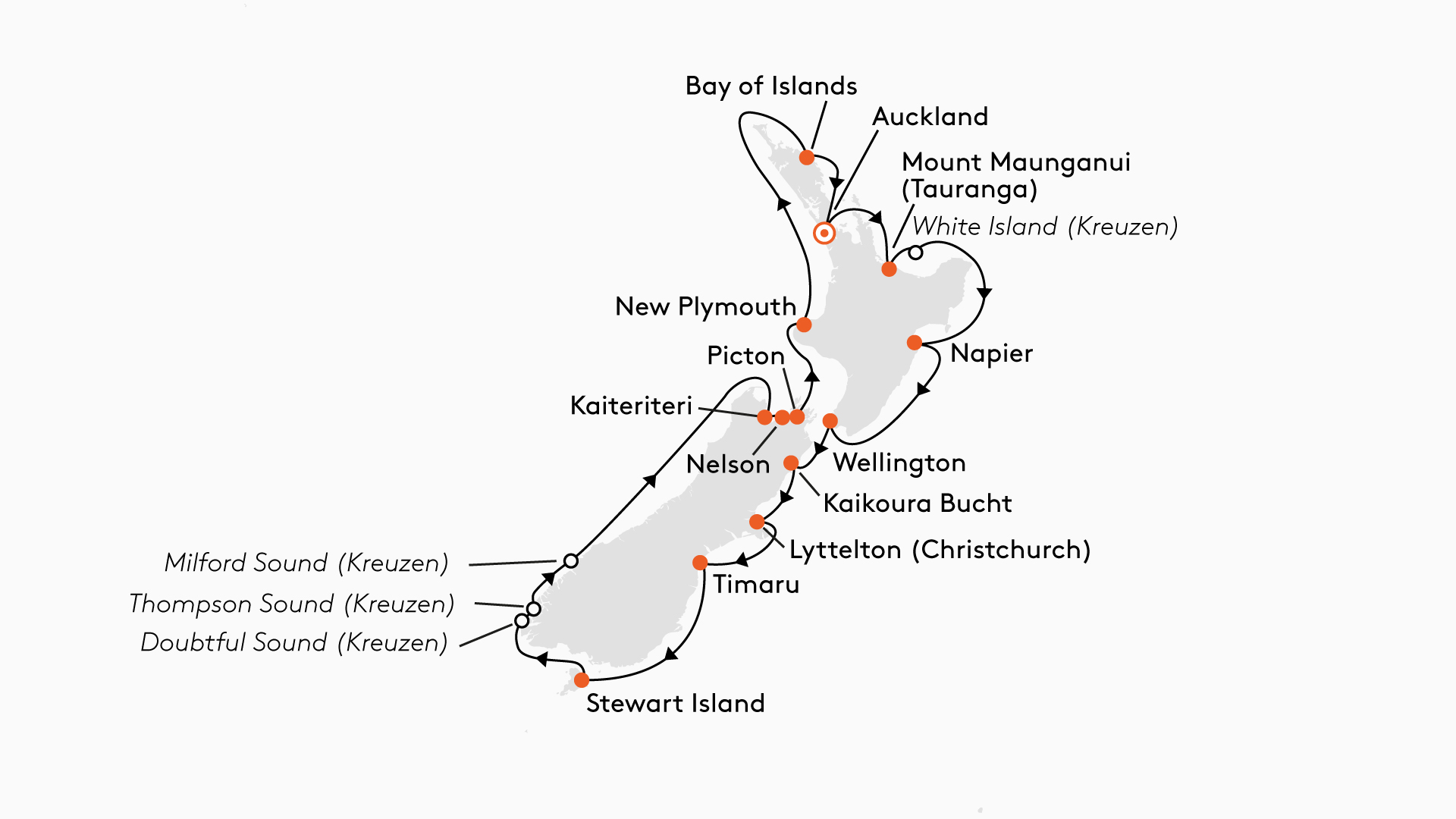 | Do., 11.03.2027 | Kreuzen im Milford Sound, Doubtful Sound und Thompson Sound/Neuseeland |