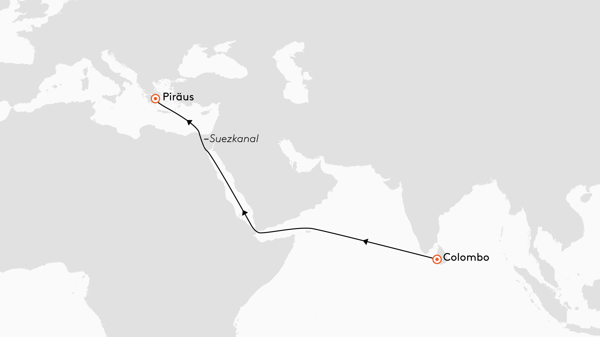 von Colombo (Sri Lanka) nach Piräus (Athen)