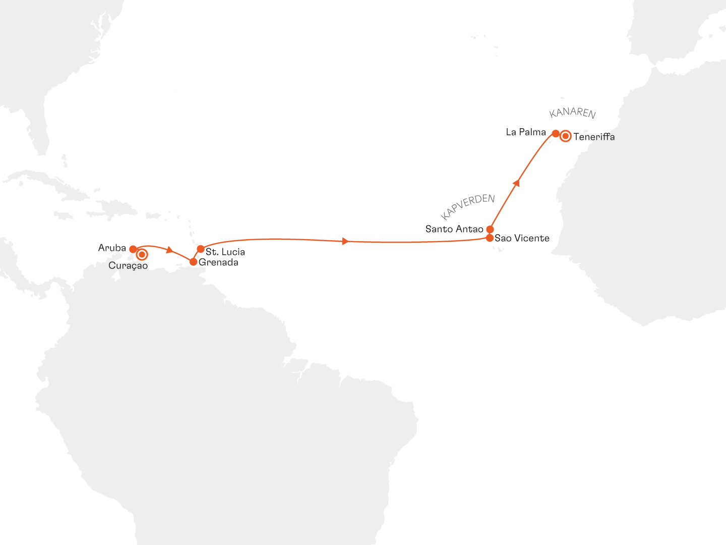 Bonbonfarbene Städte, paradiesische Strände und die ansteckende Lebensfreude der Karibik laden zum Genießen ein, bevor Sie die ursprüngliche Inselwelt der Kapverden erreichen – eine wilde Schönheit im atlantischen Ozean.