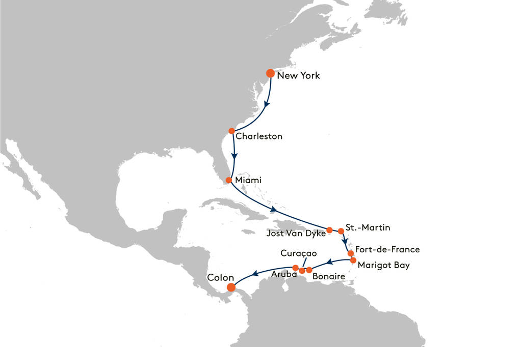 Ihre Reise zur schönsten Zeit des Jahres beginnt mit einer Übernachtung im Hafen der schillernden Metropole New York. Erleben Sie in Charleston beim Spaziergang* durch die einem Museum gleichende Altstadt echtes Südstaatenflair, oder besuchen Sie bei einem Ausflug die Boone-Hall-Plantage*, die Drehort der Serie „Fackeln im Sturm“ war. An den folgenden zwei Seetagen bietet die festlich geschmückte EUROPA 2 Ihnen einen ganz besonderen Rahmen für den Heiligen Abend und den ersten Weihnachtstag. Nach den Festtagen erleben Sie Miami schrill und bunt bei einem geführten Spaziergang* durch das berühmte Art-déco-Viertel, bevor Sie auf Jost Van Dyke kristallklares Wasser am herrlichen White Bay Beach erwartet. Elegant und unter zwei Flaggen präsentiert sich Ihnen die Insel St.-Martin während einer Rundfahrt*, oder Sie nehmen an einer Regatta* auf original America’s-Cup-Segelyachten teil, ein unvergessliches Erlebnis. Martiniques kontrastreiche Natur zeigt sich Ihnen bei einem Ausflug mit dem Geländewagen*, alternativ besuchen Sie eine Rumdestillerie* und probieren die Inselspezialität gleich vor Ort. Marigot Bay auf St. Lucia bietet Ihnen Wassersporterlebnisse der Extraklasse: Wählen Sie zwischen einer Katamaranfahrt* und einer Hochseeangeltour*. Die ausgesprochen farbenfrohe Hauptstadt von Bonaire, Kralendijk, können Sie aus dem Elektro-Tuk-Tuk* heraus bestaunen, ehe in Willemstad auf Curaçao Korallenriffe und die Unterwasserwelt zu einer faszinierenden Exkursion in einem Semi-U-Boot* locken. Genießen Sie zum Ausklang Ihrer Reise eine Katamaranfahrt* mit Schnorchelstopp auf Aruba, vorbei an langen weißen Stränden, bevor sich die EUROPA 2 in Colon von Ihnen verabschiedet. *Die Vor- und Nachprogramme sowie die Landaktivitäten sind nicht im Reisepreis enthalten und in Planung. Änderungen vorbehalten.