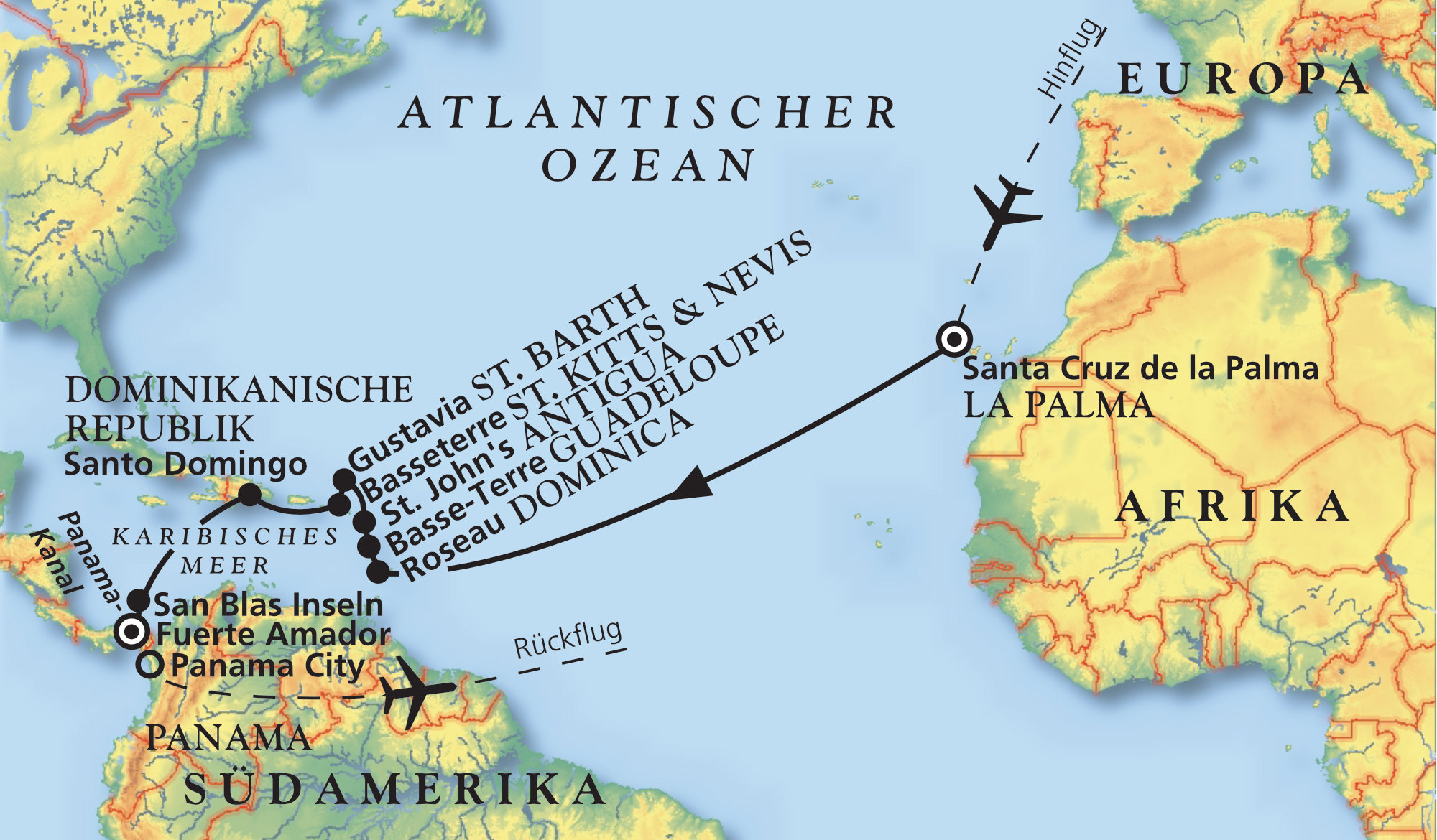 Santa Cruz de la Palma - Roseau - St. John's - Santo Domingo - San Blas Inseln - Panama-Kanal - Fuerte Amador (Panama)