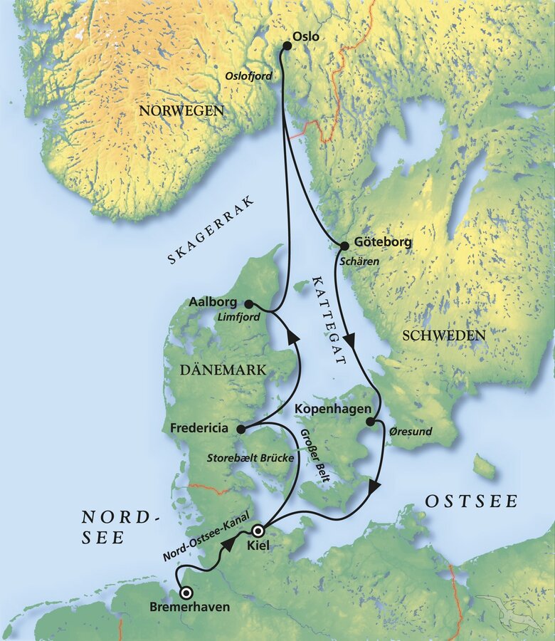 Bremerhaven - Fredericia - Aalborg - Oslo - Göteborg - Kopenhagen - Kiel