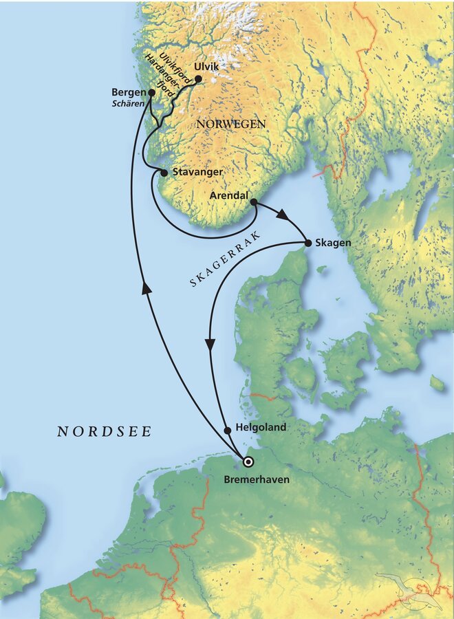 Bremerhaven - Bergen - Ulvik - Stavanger - Arendal - Skagen - Helgoland - Bremerhaven