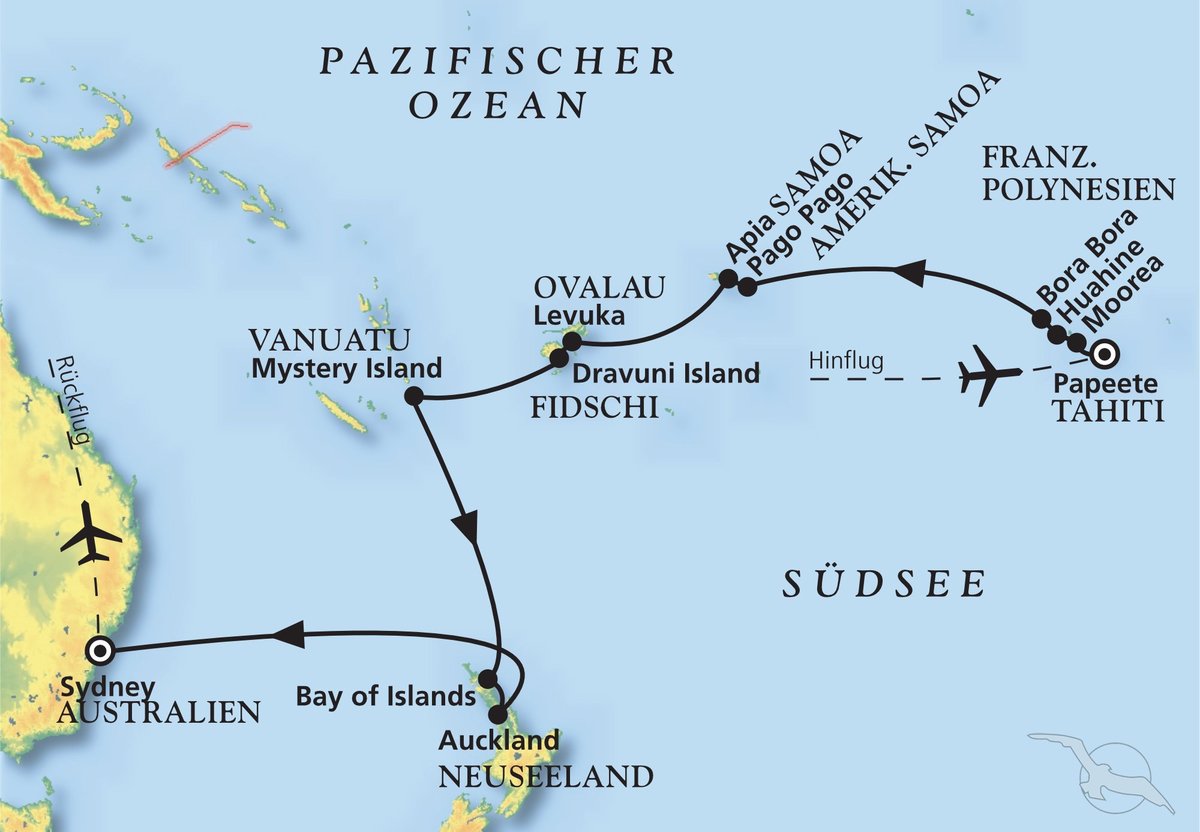 Papeete - Moorea - Bora Bora - Apia - Mystery Island - Bay of Islands - Auckland - Sydney