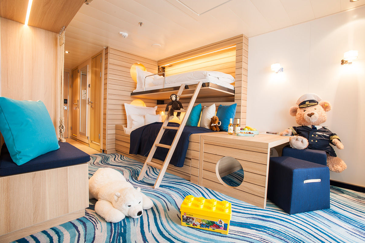 - Einer der Wohnbereiche ist in seiner Ausstattung explizit auf unsere jüngeren Kreuzfahrer zugeschnitten: