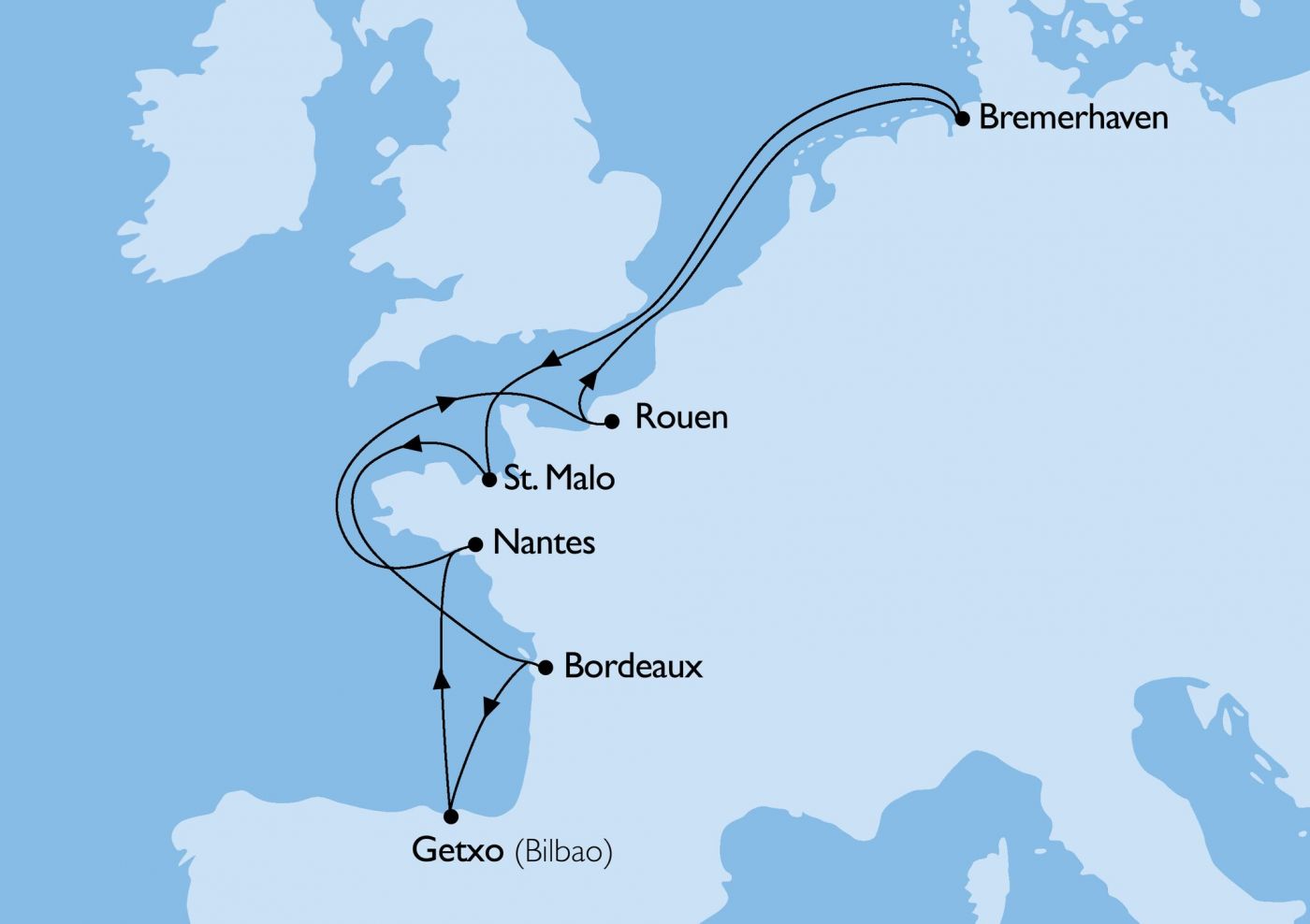 | 02.09. | Bordeaux (Frankreich) Passage Gironde (Frankreich) Passage Garonne (Frankreich) |