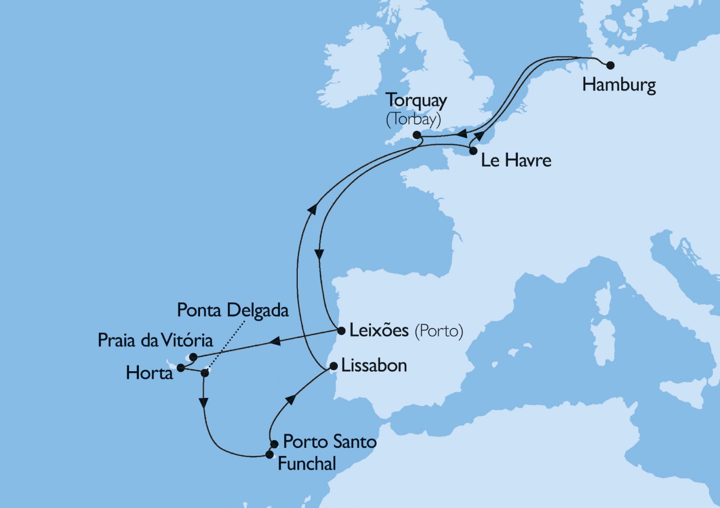 | 28.10. | Horta, Faial, Azoren (Portugal) | 06:00 | 19:00 |