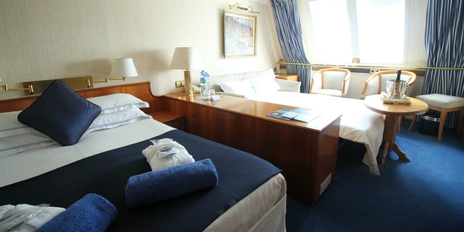 BERLIN verfügt über 2 Grand Suiten. Komfortabel eingerichtet. Ausgestattet mit einem franz. Bett. Fühlen Sie sich wohl - geniessen Sie Kreuzfahrt an Bord der MS BERLIN und in Ihrer 37 qm Grand Suite. Meerblick selbstverständlich inklusive. Ahoi!