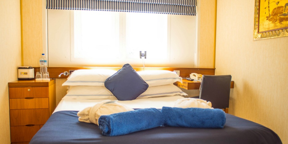 Die Außenkabine - eine gute Wahl. Es gibt 5 verschiedene Kategorien von Außenkabinen, die sich auf 5 Decks verteilen. Sie können wählen zwischen Bullaugen auf dem B-Deck oder aber größeren Fenstern auf den restlichen Decks bis hoch zum Brücken-Deck. Die Kabinen sind ca. 13 bis 16 qm groß. Auch bei der Außekabine können Sie sich zwischen Kabinen mit 2 Unterbetten oder einem franz. Bett entscheiden.