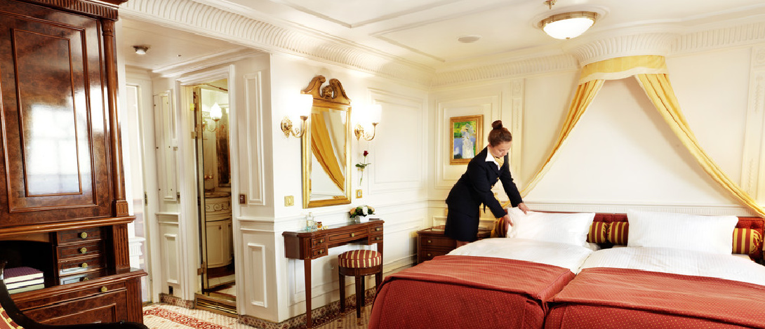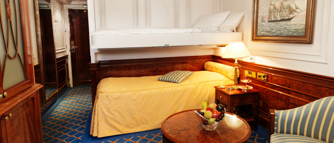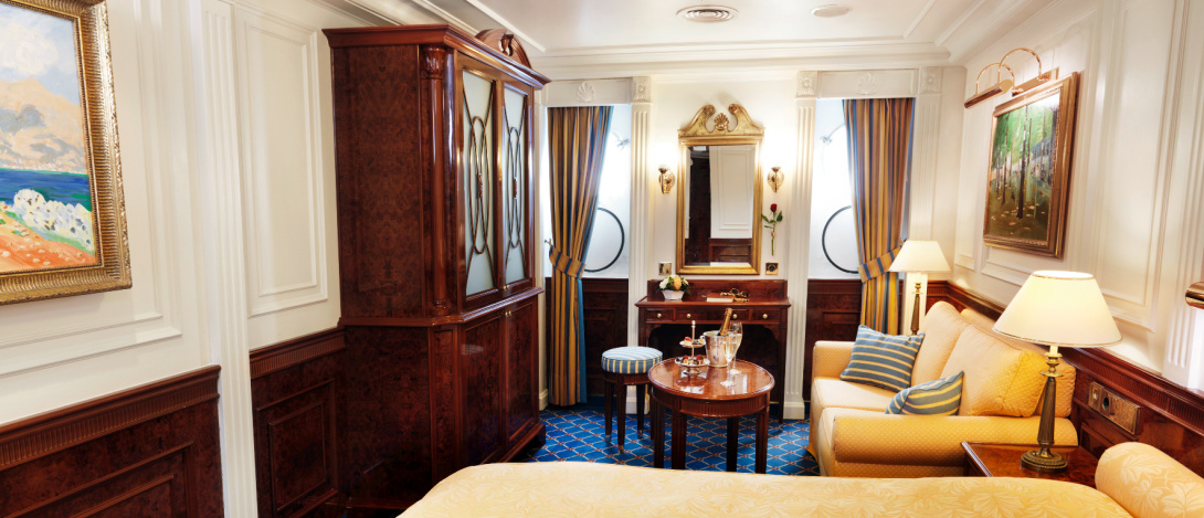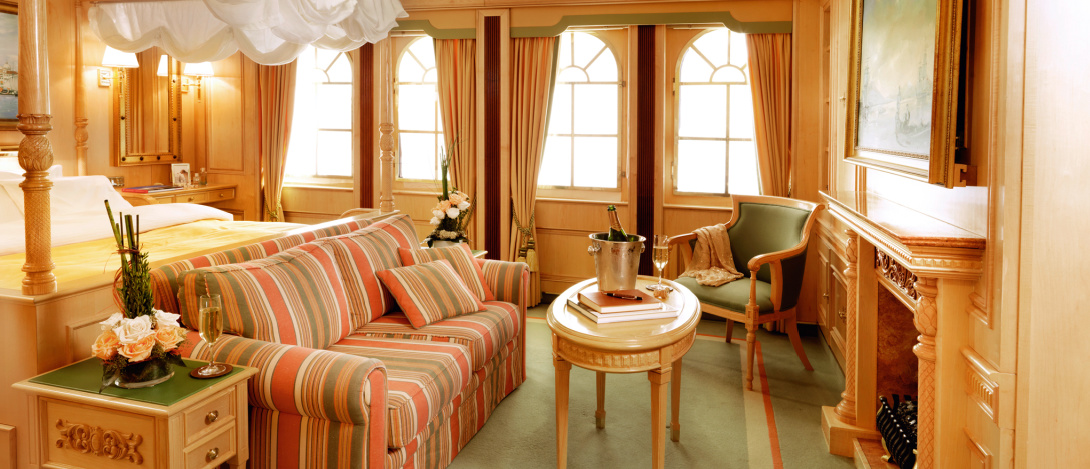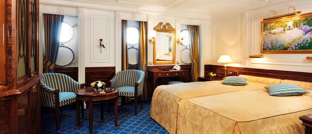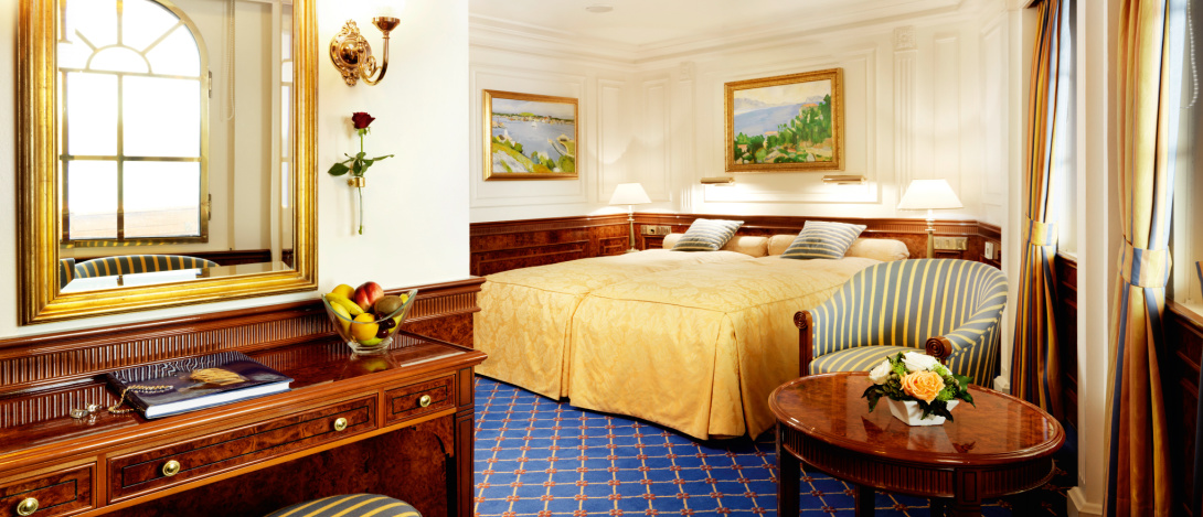 - Von der Owner-Suite bis zur De-Luxe-Außenkabine: Die 47 geschmackvoll eingerichteten Kabinen sind ein besonderer Rückzugsort für höchste Ansprüche. Mit Marmorbädern, kleiner Sitzecke und viel Platz für persönliche Utensilien überzeugt Ihr privates Refugium mit Komfort und Großzügigkeit.