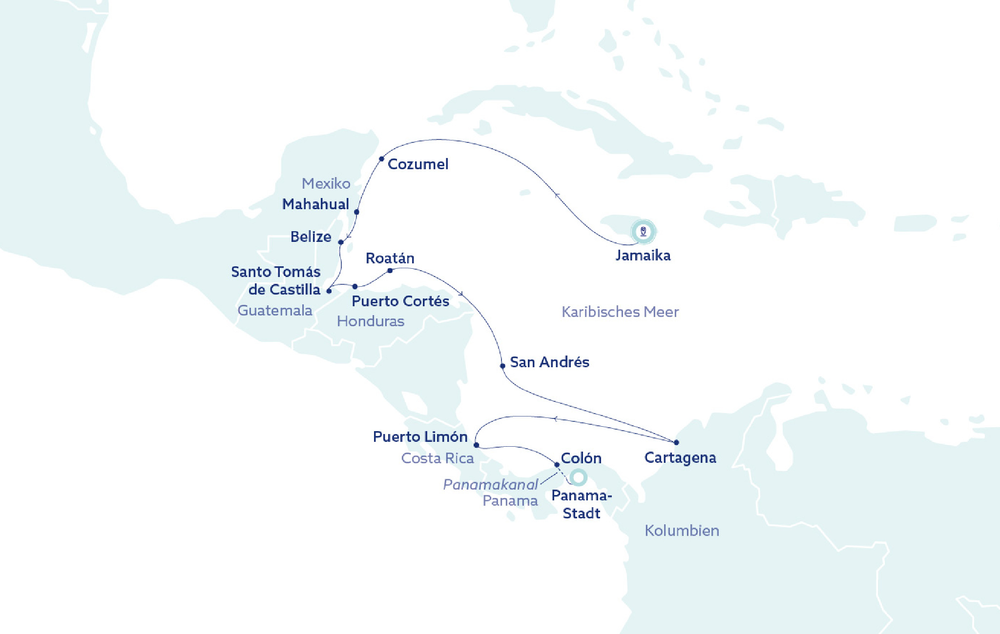 Jamaika - Mexiko - Belize - Guatemala - Honduras - Kolumbien - Costa Rica - Panamakanal - Panama-Stadt