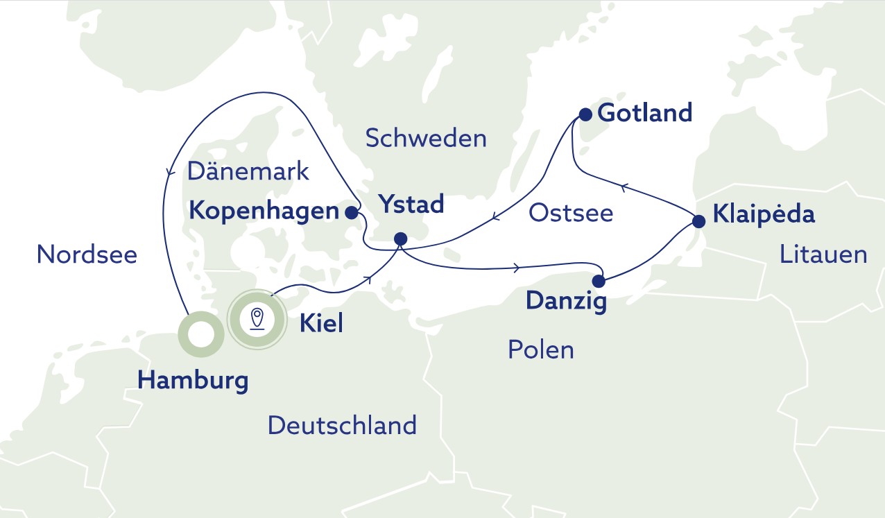 Kiel - Ystad - Danzig - Klaipėda - Gotland - Kopenhagen - Hamburg