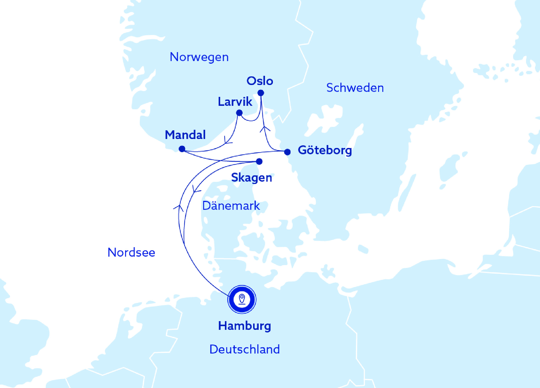 Hamburg • Göteborg • Oslo • Larvik • Mandal • Skagen • Hamburg
