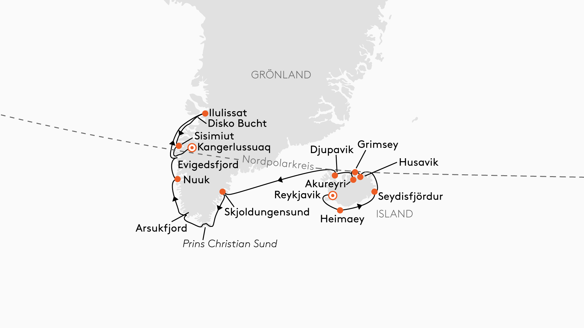 | Mi., 23.06.2027 | Reykjavik/Island, Abfahrt 19.00 Uhr |