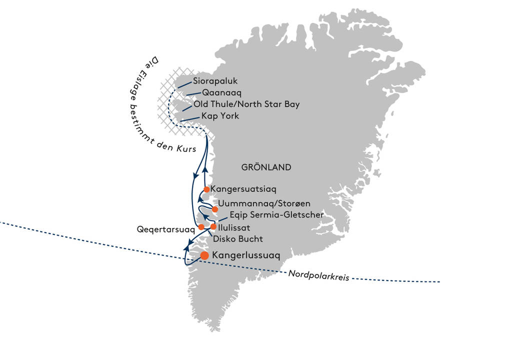 Reiseverlauf abhängig von behördlichen Genehmigungen, Wetter- und Eislage. Beschriebene Naturerlebnisse/Tiersichtungen sind mögliche Ereignisse auf dieser Expedition und nicht garantiert.
