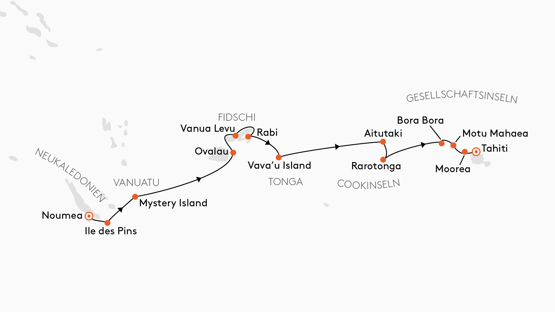 | Mo., 22.03.2027 | Noumea/Neukaledonien, Abfahrt 24.00 Uhr |