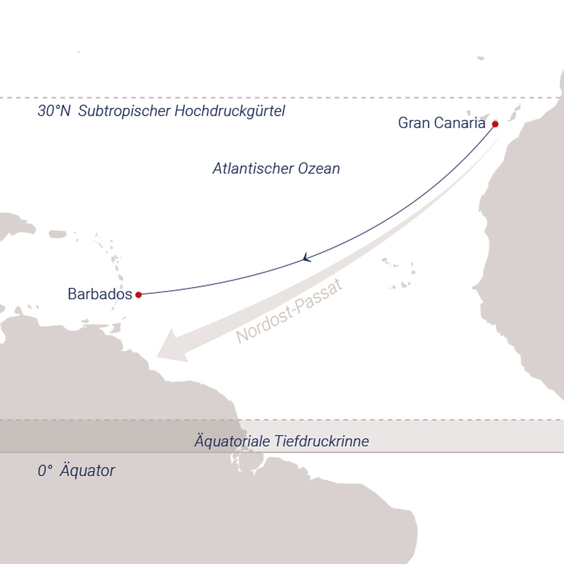 - Segeln auf Kolumbus’ Route: perfekte Windbedingungen unter dem Passat.