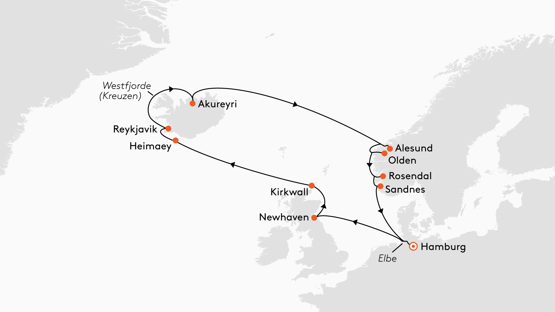 Mi., 16.06.2027 | Individuelle Anreise Hamburg/Deutschland, Abfahrt 18:00 Uhr |