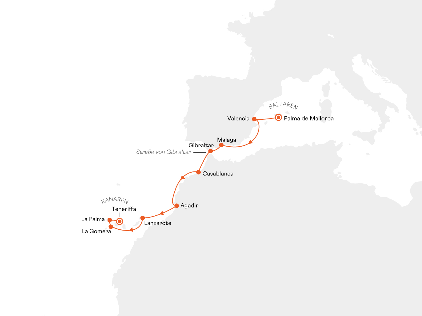 | 25.10.2027 | Palma de Mallorca/Mallorca/Balearen/ Spanien, Abfahrt 21:00 Uhr |