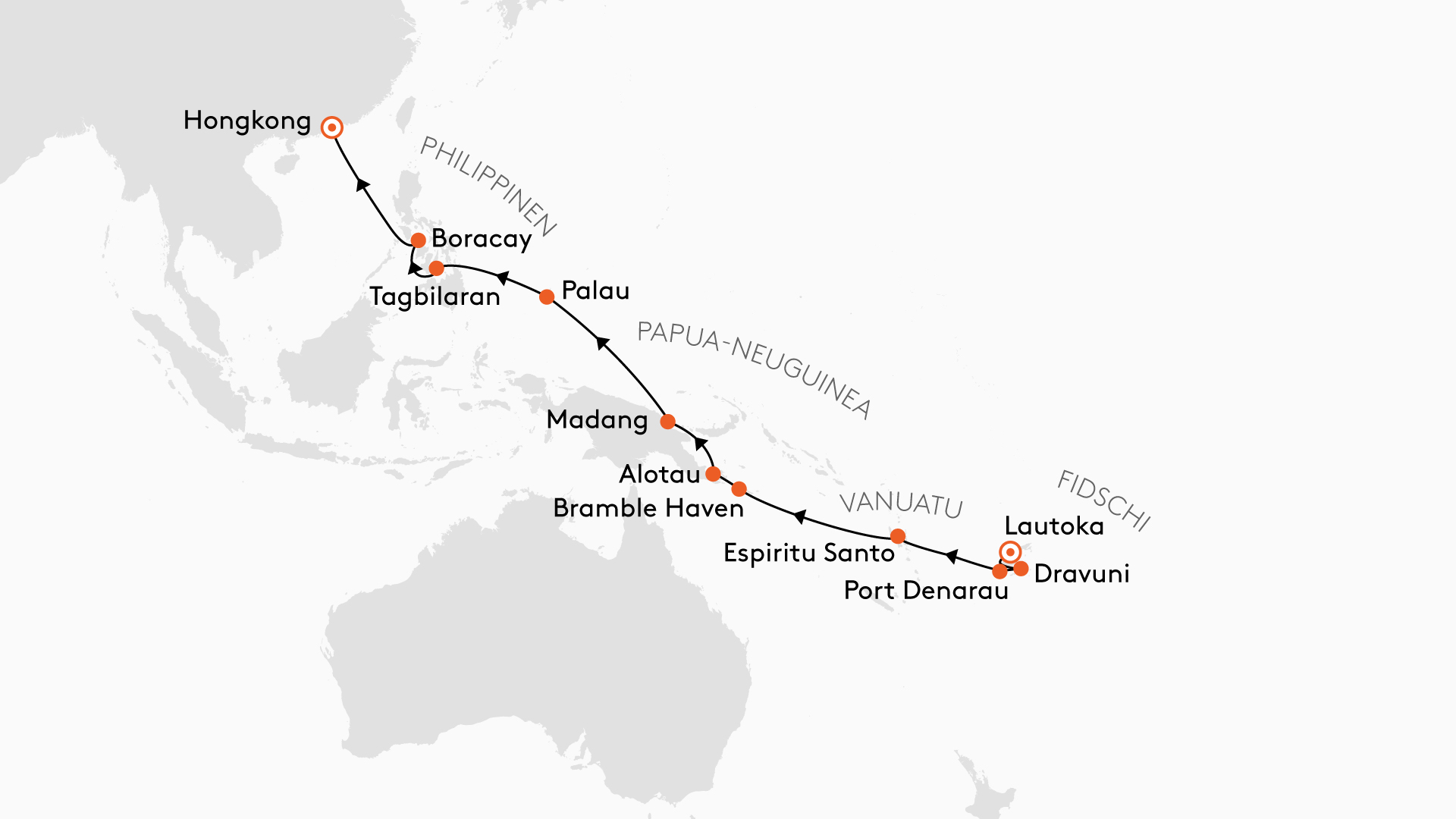 | Do., 15.04.2027 | Alotau/Milne Bucht/Papua-Neuguinea, 08.00 – 19.00 Uhr |