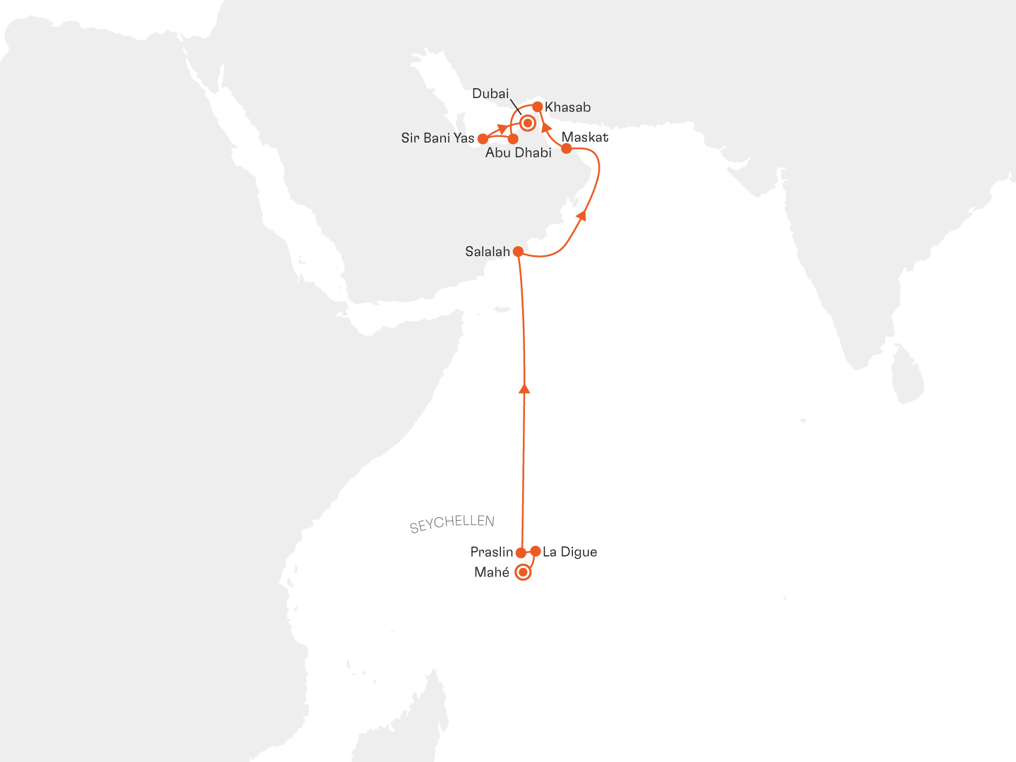 von Mahe (Seychellen) nach Dubai