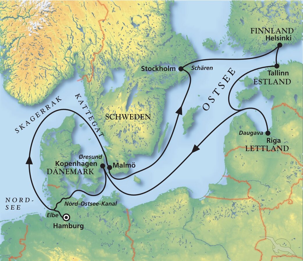 Hamburg - Malmö - Stockholm - Helsinki - Tallinn - Riga - Kopenhagen - Hamburg