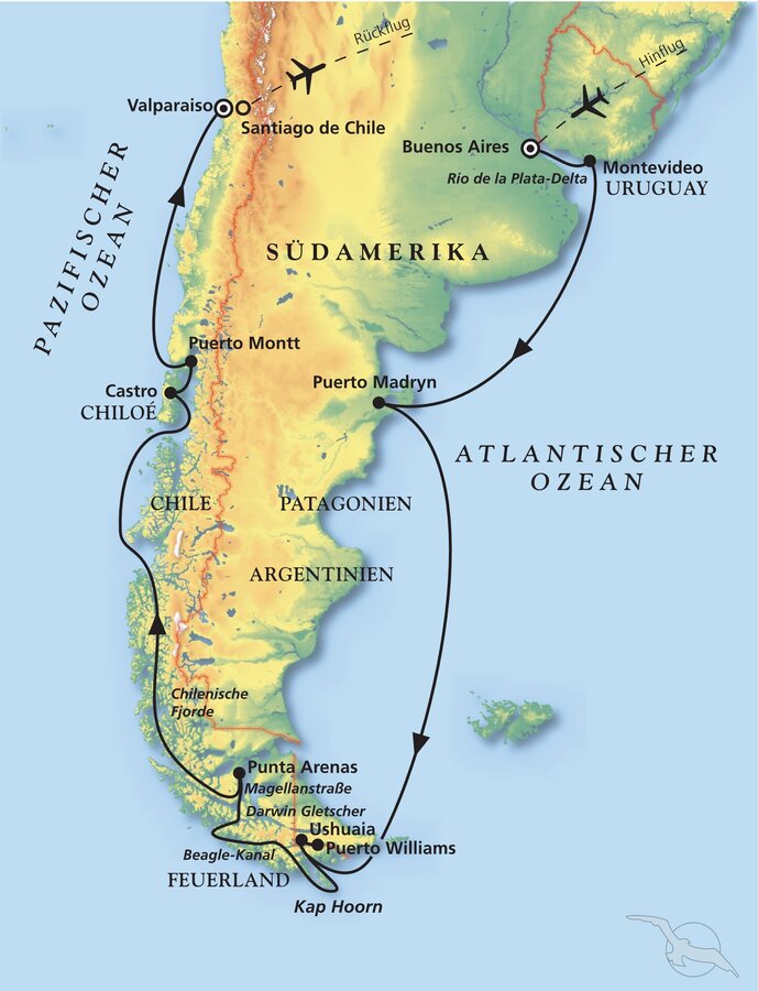 Buenos Aires - Montevideo - Puerto Madryn - Ushuaia - Feuerland - Kap Hoorn - Puerto Montt - Valparaiso