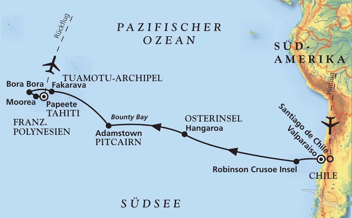 Valparaiso - Hangaroa - Bounty Bay - Bora Bora - Moorea - Papeete