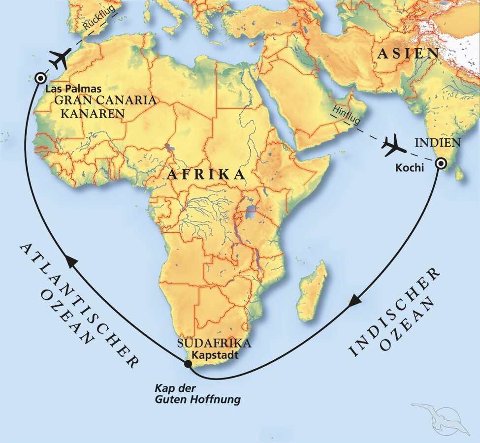 Kochi (Indien) - Kapstadt (Südafrika) - Las Palmas (Gran Canaria)