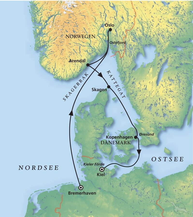 Bremerhaven - Oslo - Arendal - Skagen - Kopenhagen - Kiel