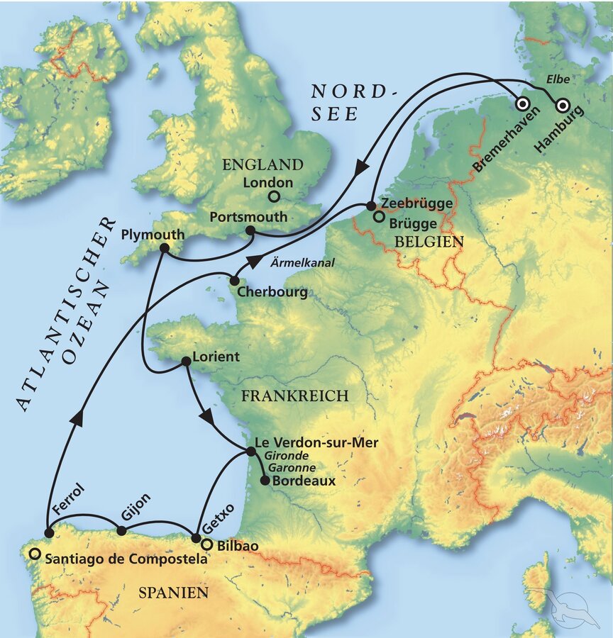 Bremerhaven - Portsmouth - Lorient - Bordeaux - Bilbao - Ferrol - Cherbourg - Zeebrügge - Hamburg