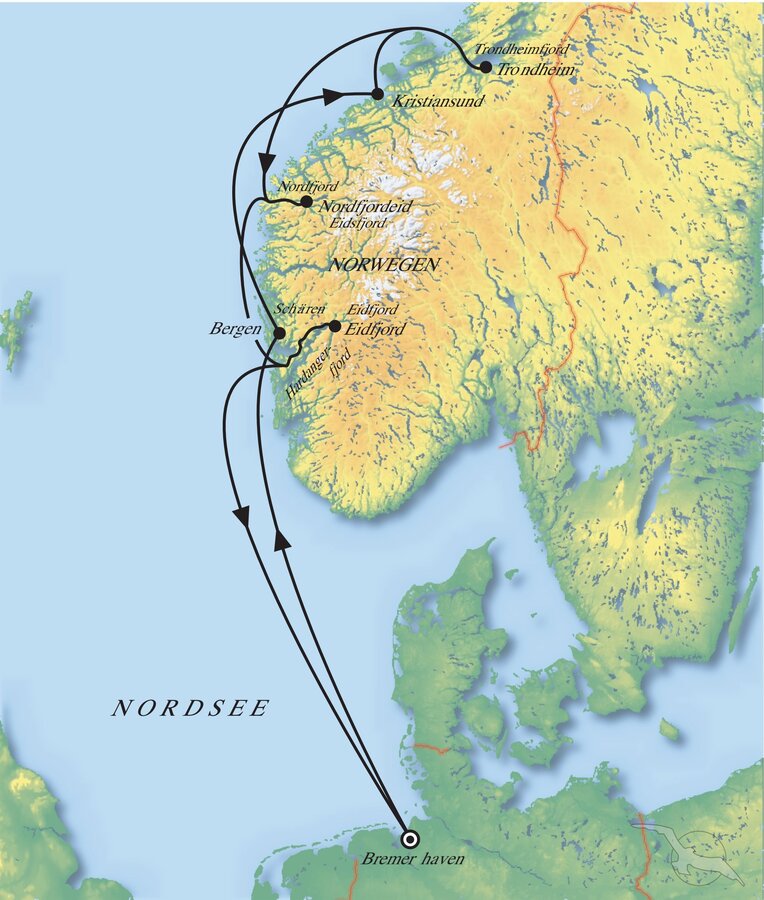 Bremerhaven - Bergen - Kristiansund - Trondheim - Nordfjordeid - Eidfjord - Bremerhaven